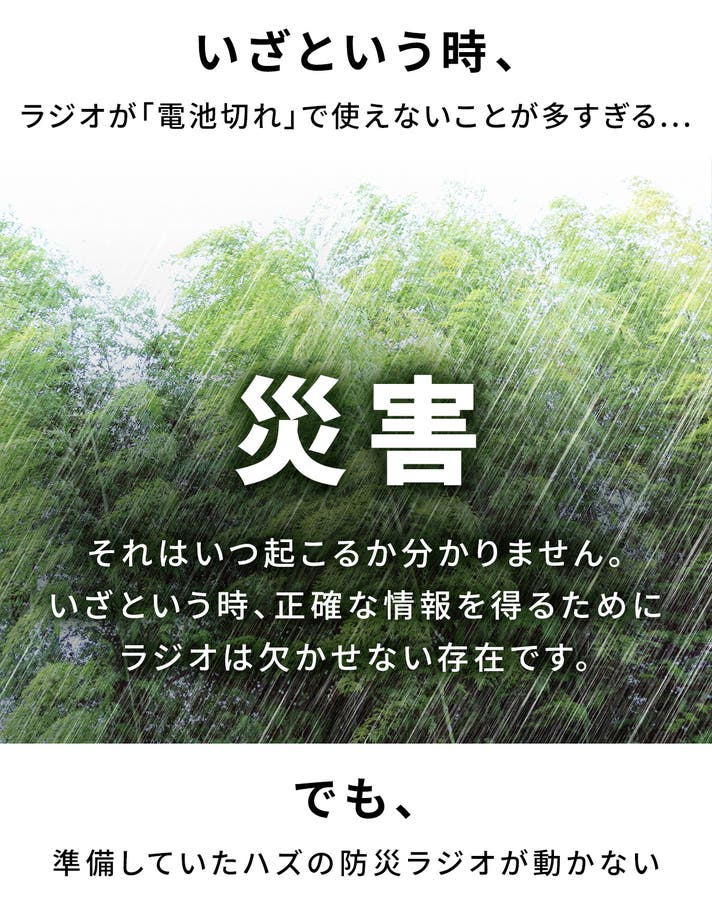 災害が起きた時、「ラジオが動かない」「スマホの電池が切れた」そんな声を耳にするたびに、私たちはずっと違和感を抱いてきました。