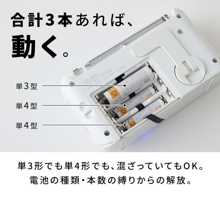 「単4を4本」「単3を3本」そんな“電池の種類や本数の縛り”から解放した、新発想の防災ラジオ。