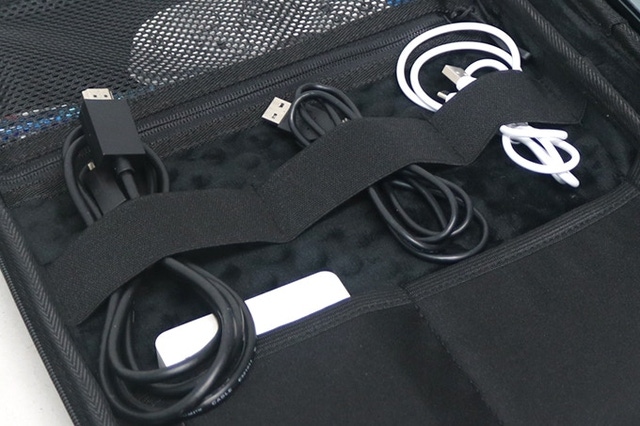 3つに分かれているゴムバンドは、アダプターやケーブルなどの配線類の整理をして収納することが可能です。