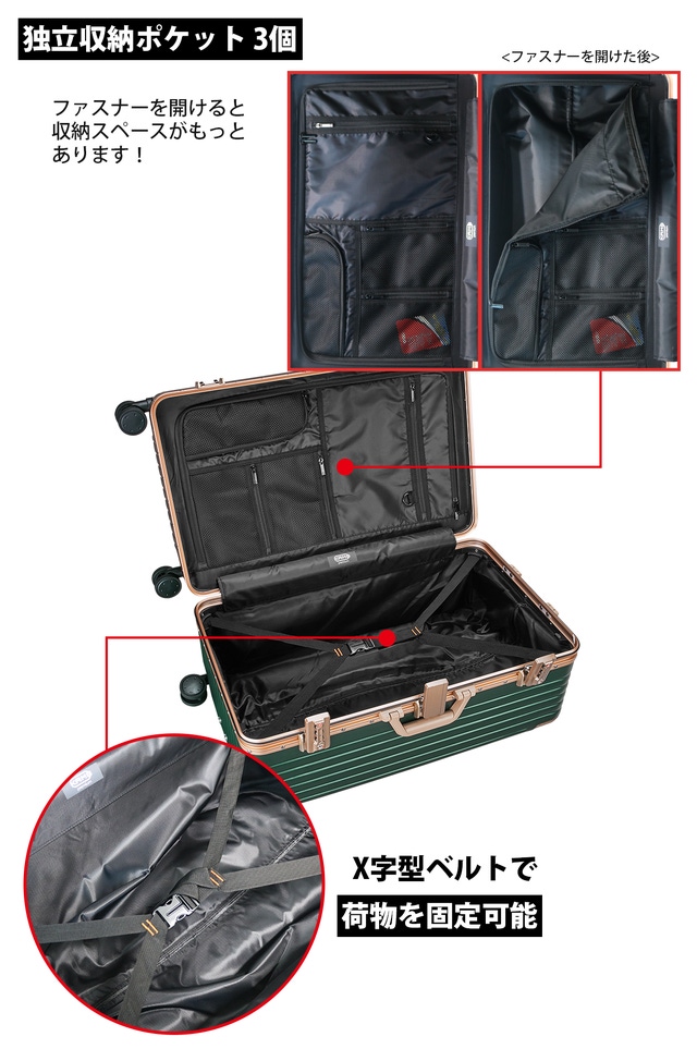- 既存のスーツケースより深い幅。悩まずに持っていきたいものは全部入れてください!