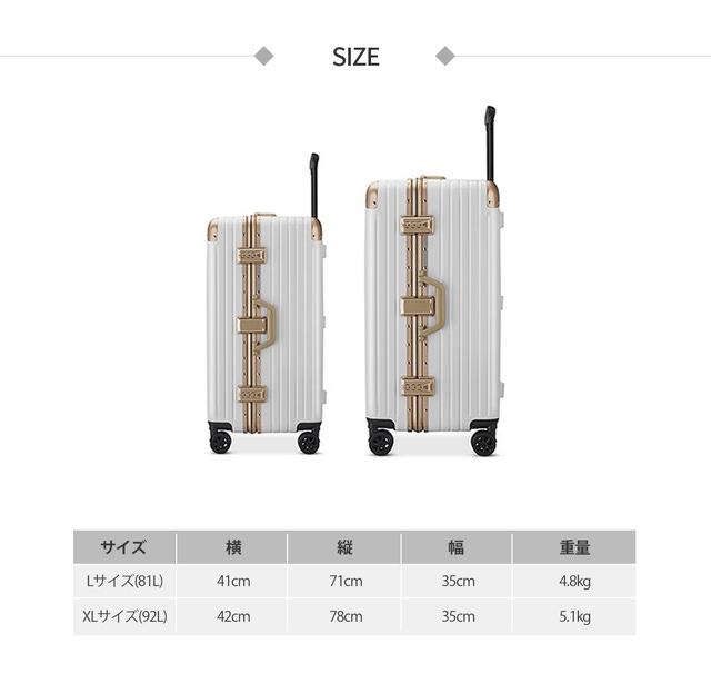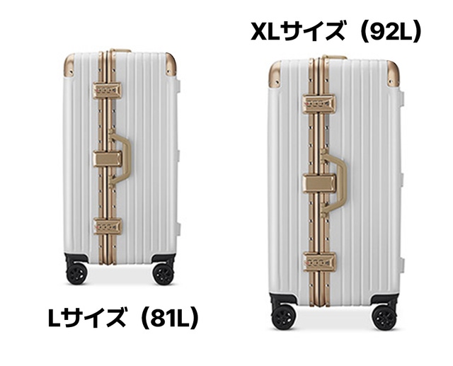 RETOOのPC素材にアルミフレームを装着したLサイズ(81L)のスーツケース2個と、半透明カバーを提供!