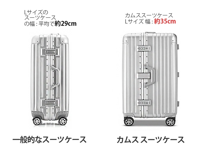 幅が広く、同じサイズのスーツケースよりも多く収納できるカムススーツケースならどうでしょう…?