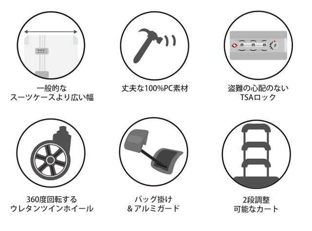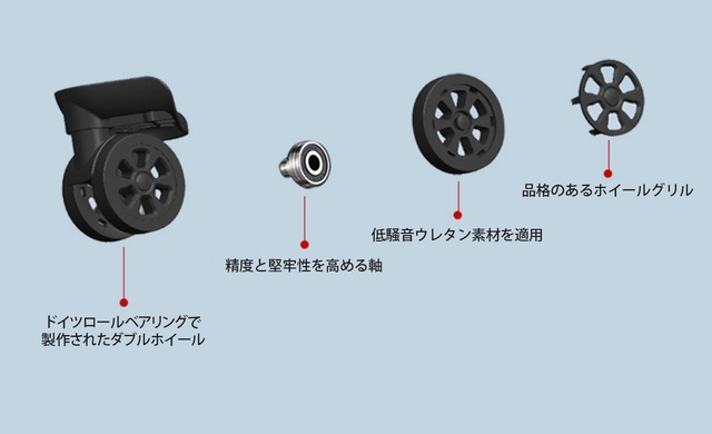 キャリアの本質である旅行客の荷物を運搬する上で、丈夫な材質と車輪に最も気を使います。