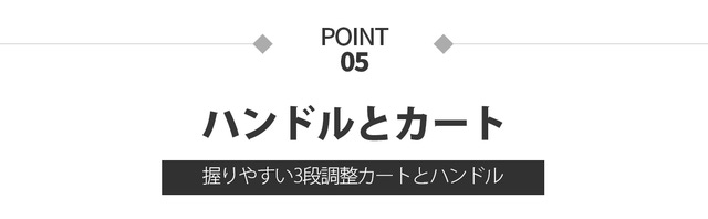 2段調節が可能なカートで、背が高くても小さくても最適な位置で使用できます。 カート表面には酸化防止工法処理とメタル処理が施されており耐久性に優れ摩耗しにくいです。