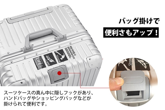 通常のスーツケースより幅が広いので、同じインチのスーツケースより物をたくさん入れることができるという長所があります。
