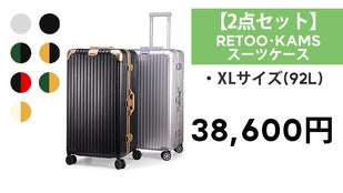 RETOOのPC素材にアルミフレームを装着したXLサイズ(92L)のスーツケース2点と、半透明カバーを提供!