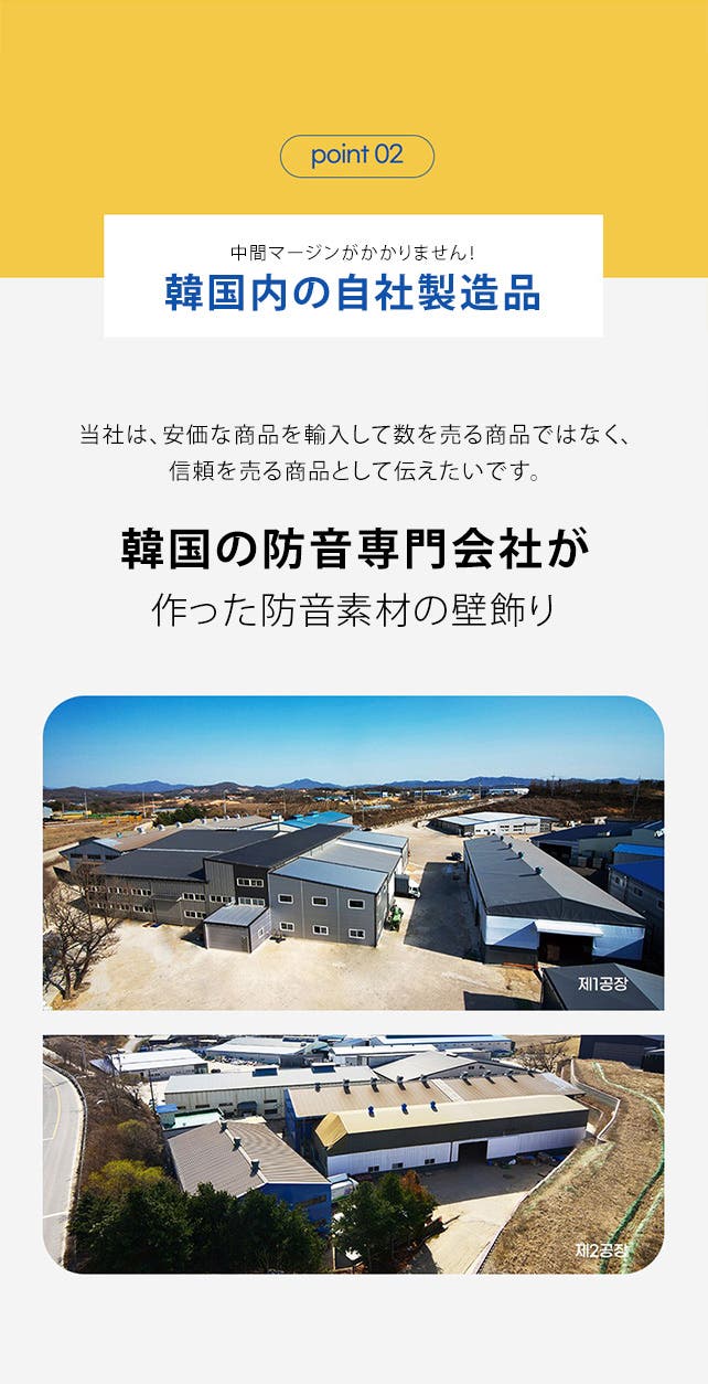 防音専門企業(株)B&Bが研究開発した防音材は、接着力と密度を維持するために厳しい品質管理が必要で、そのためには100%韓国内生産にこだわっています。