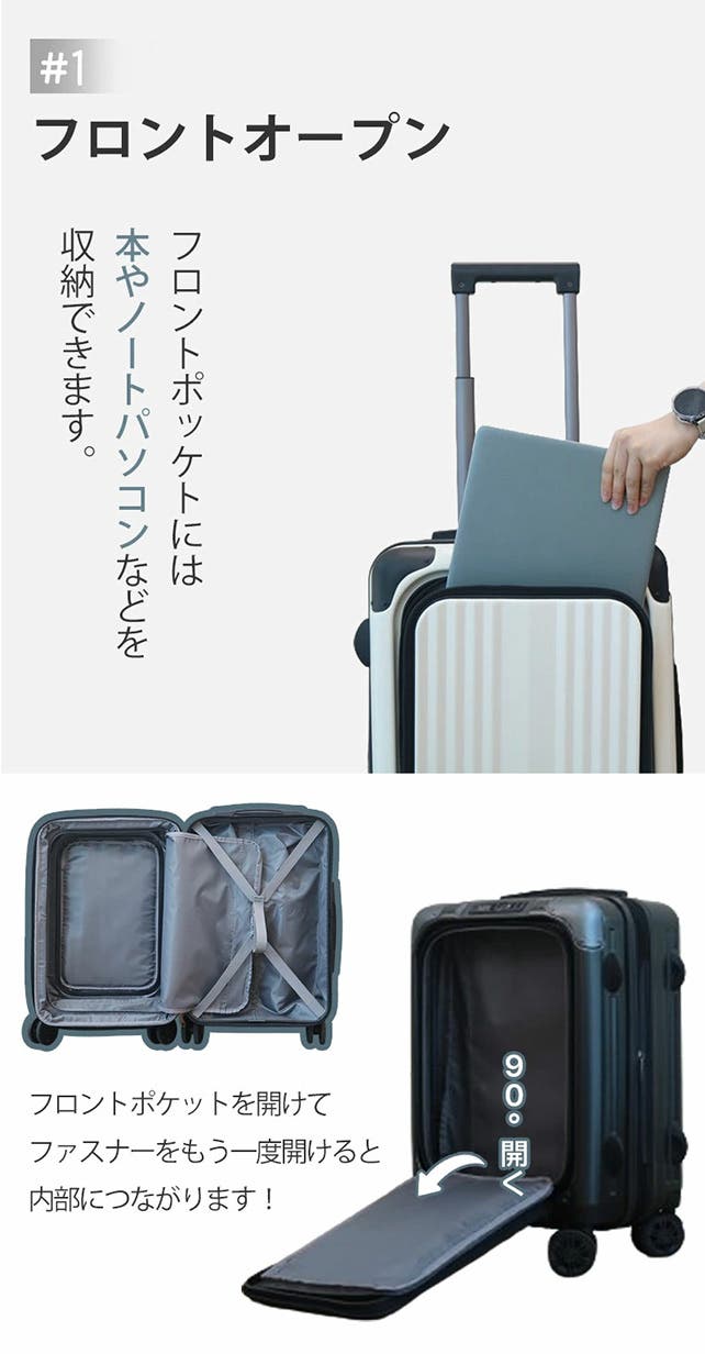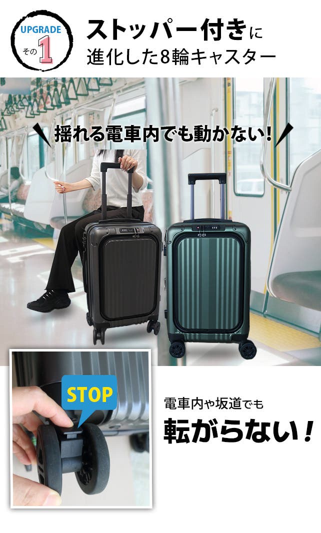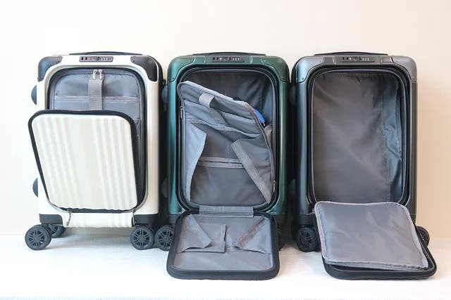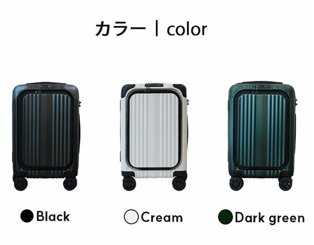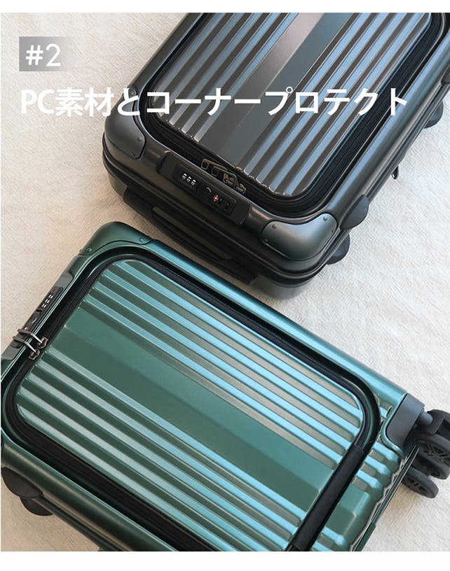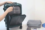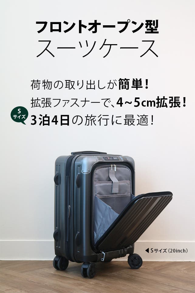 スーツケースを横に倒さなくても中の荷物を取り出せるの特徴です。特にビジネスや短期旅行、機内持ち込みで便利さを求める人におすすめです。