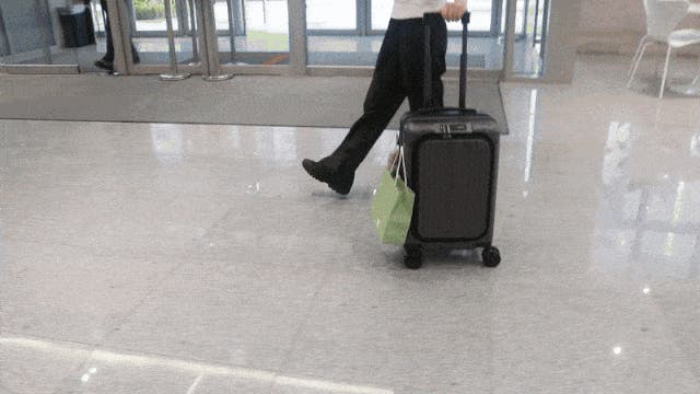 ストッパーをロックするだけでスーツケースがピタッと止まります。あなたの旅をより快適でスマートになります。
