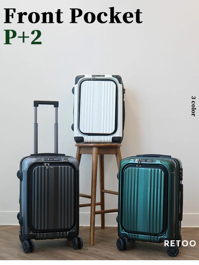 P+2は前面にファスナーで開閉できるポケットが付いているスーツケースで、