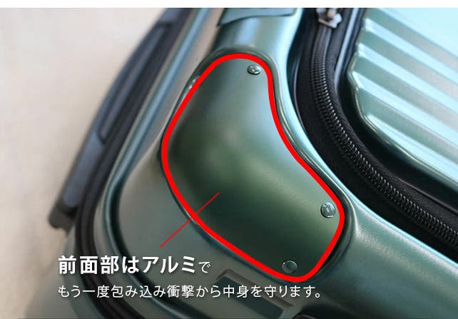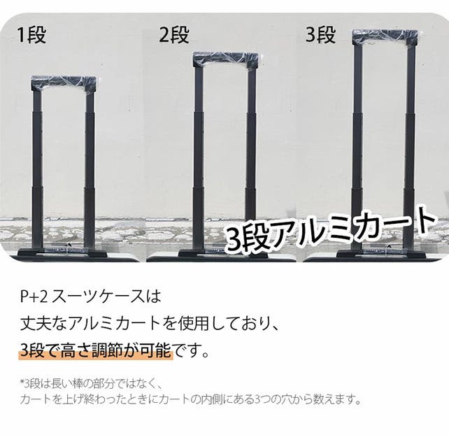 P+2スーツケースは、ポリカーボネート(PC)を100%使用しているので、飛行機の手荷物として利用する際にも、外部衝撃から内部物を守ります!