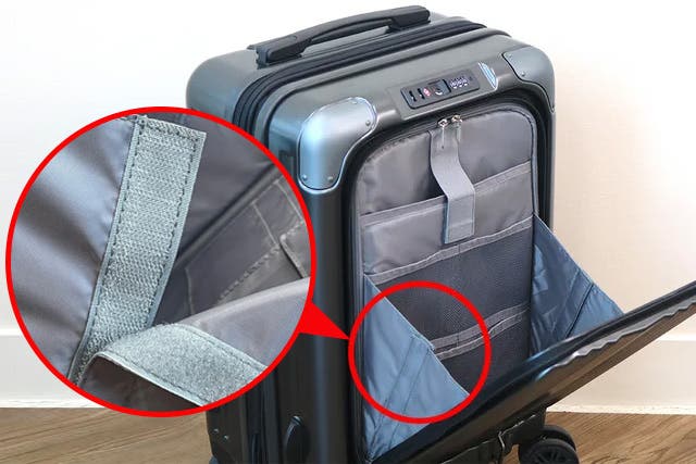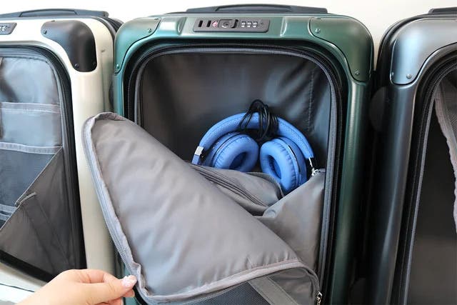 パソコン収納面のファスナーを開けると内部と繋がっていてスーツケースを寝かせずに中の荷物を取り出すことがてきます。