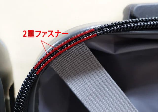 盗難防止の二重ファスナーは通常のファスナーと違ってファスナーが二重になっています。