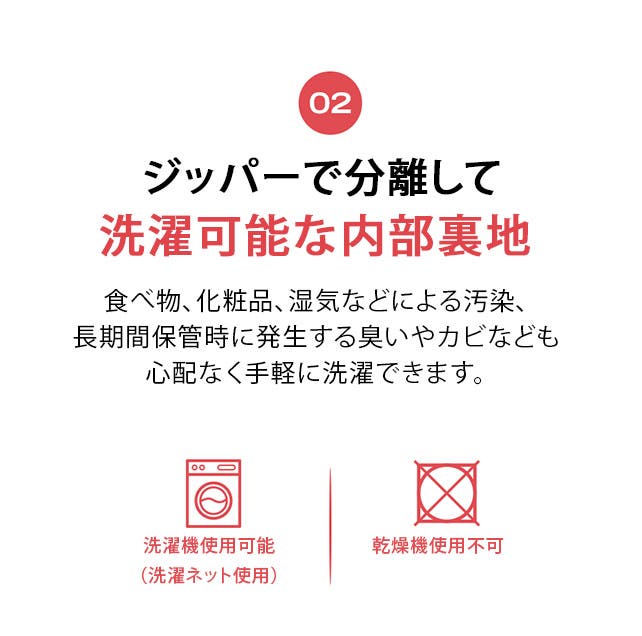 - 内装のインナー生地は完全分離構造、一番汚れやすいキャスターまで取り外してすべて洗える