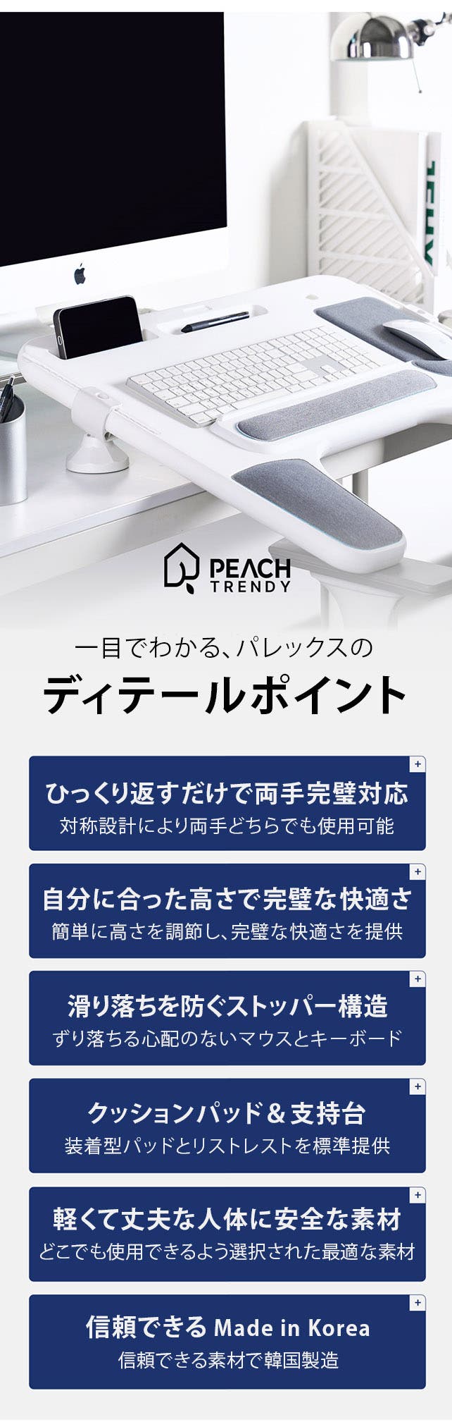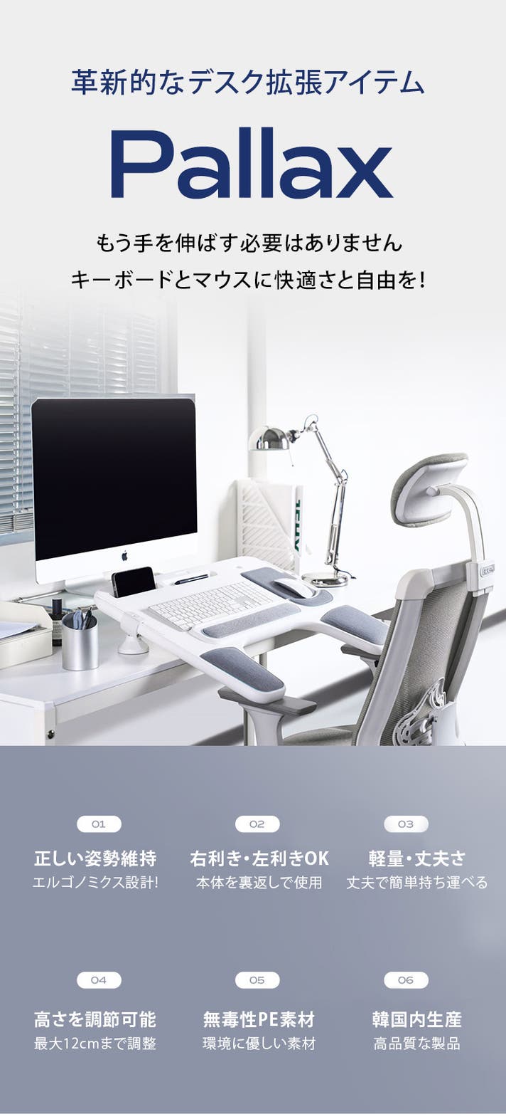 PEACHは今回、デスクを拡張して腕を自然な位置へ! 身体の緊張を解きほぐし、明るい表情で作業に集中できるデスクエクステンダー「Pallax」を発売しました。