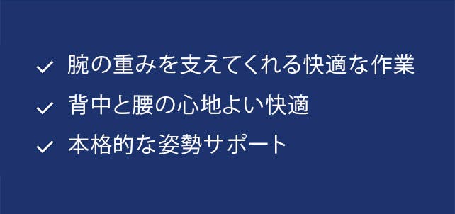 長時間の作業でも前かがみを防ぎ、無理のない姿勢をサポート!
