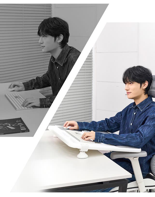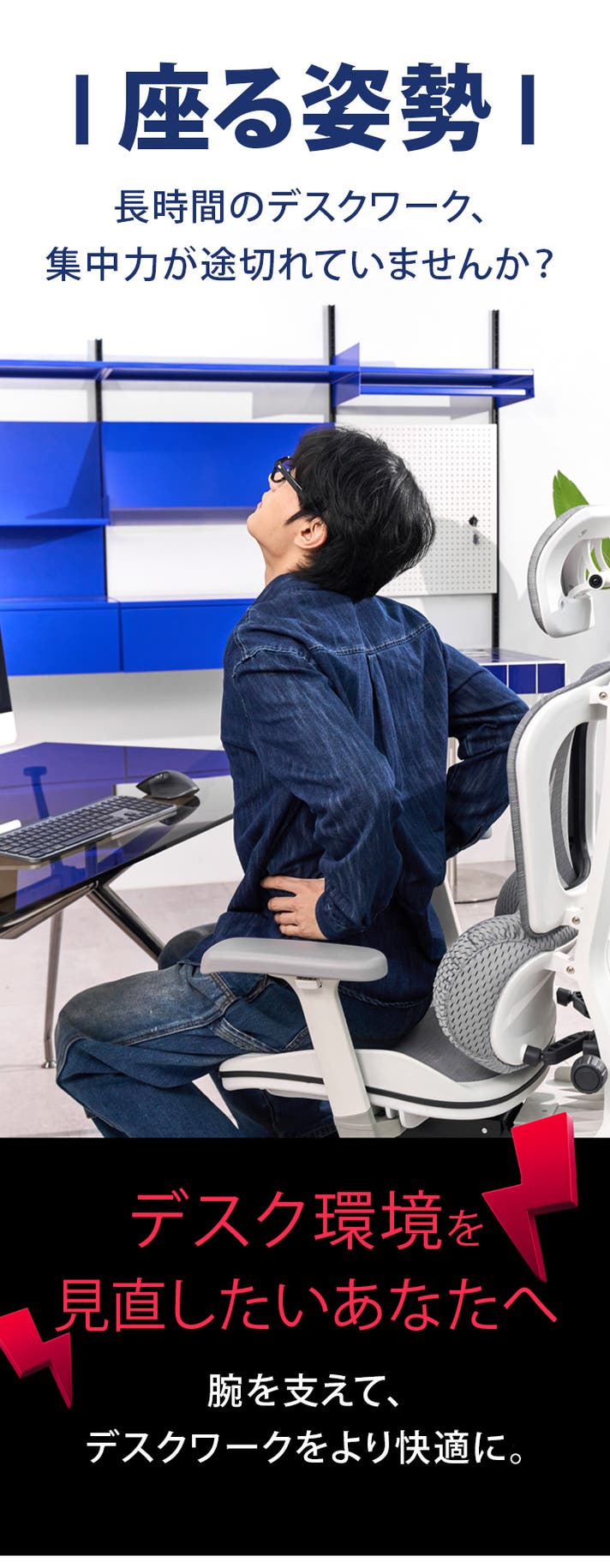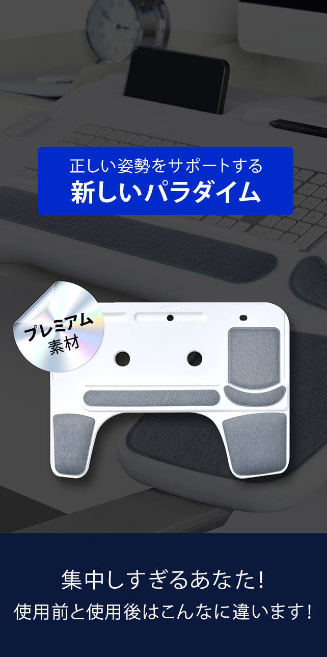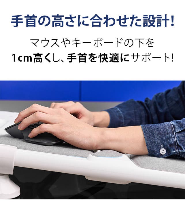 キーボードやマウスを操作する際、私たちは無意識に腕を前に伸ばし、肩の筋肉だけで支え続けています。既存のデスクを買い替えることなく、「いかに自然に、体の方へ作業スペースを引き寄せるか」という一点に注がれました。