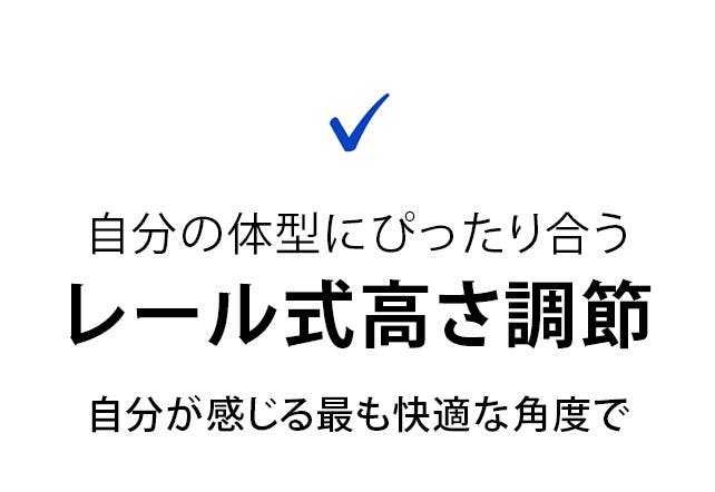 - 体型に合わせてスムーズに調整できる、レール式の高さ・角度設定できます。