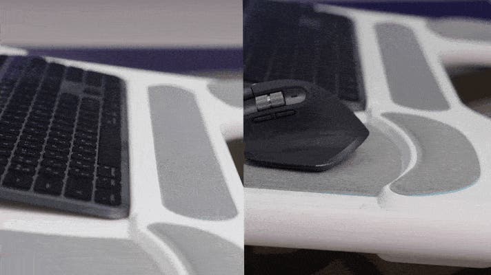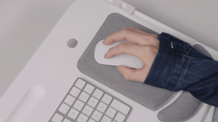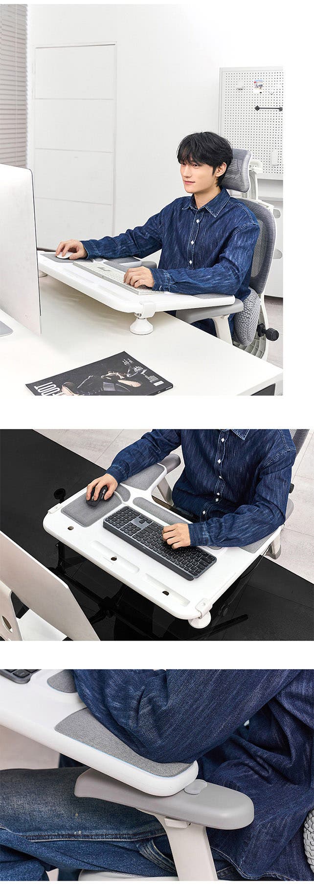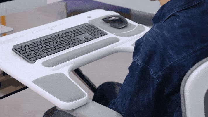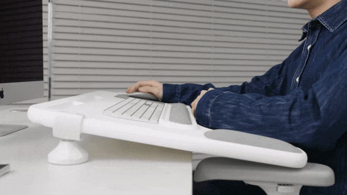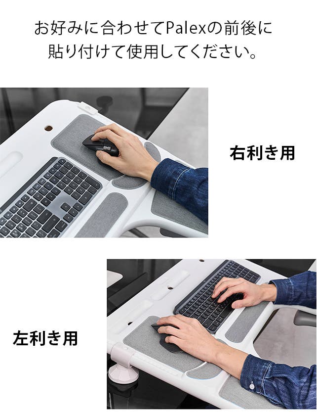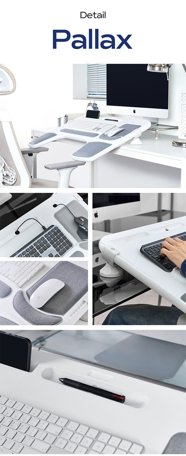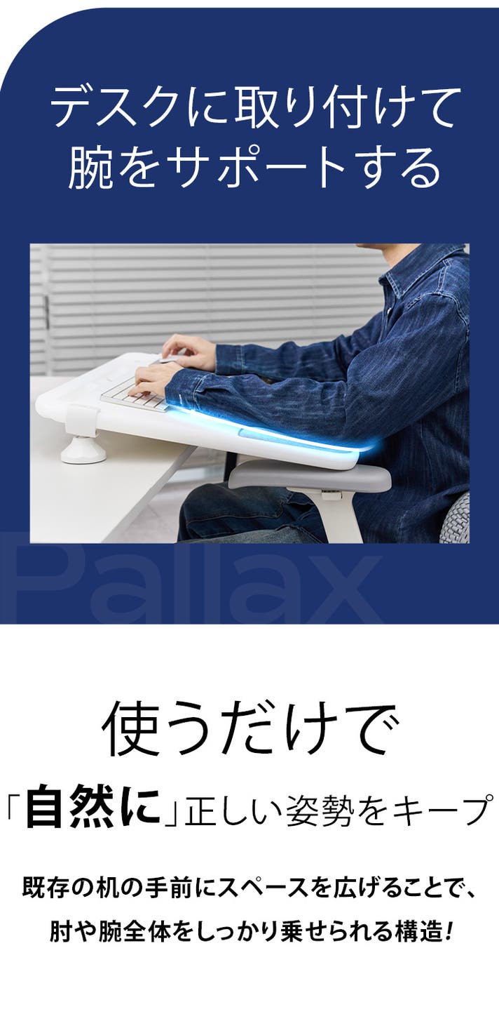 デスクエクステンダー (Pallax)は、両肘をしっかりサポートし、正しい姿勢を維持します。