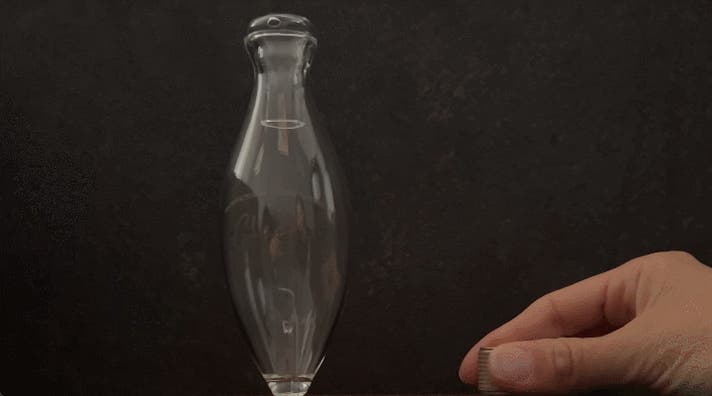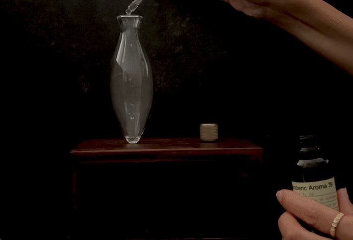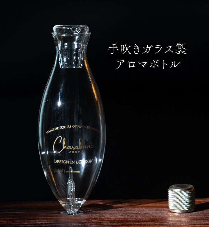 そして、その上に乗るのは手吹きガラス製のアロマボトル。