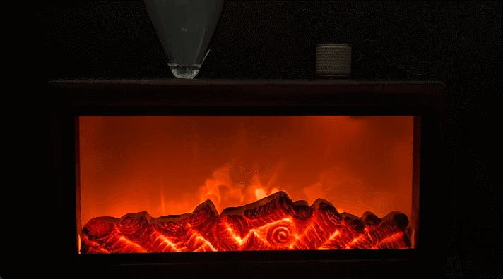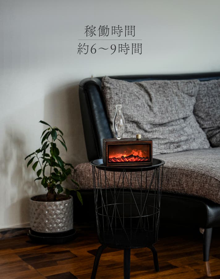 ダイヤルを押すたびに3段階の明るさで切り替わる暖炉の炎は、まるで本物の火を眺めているかのような温もりを演出します。
