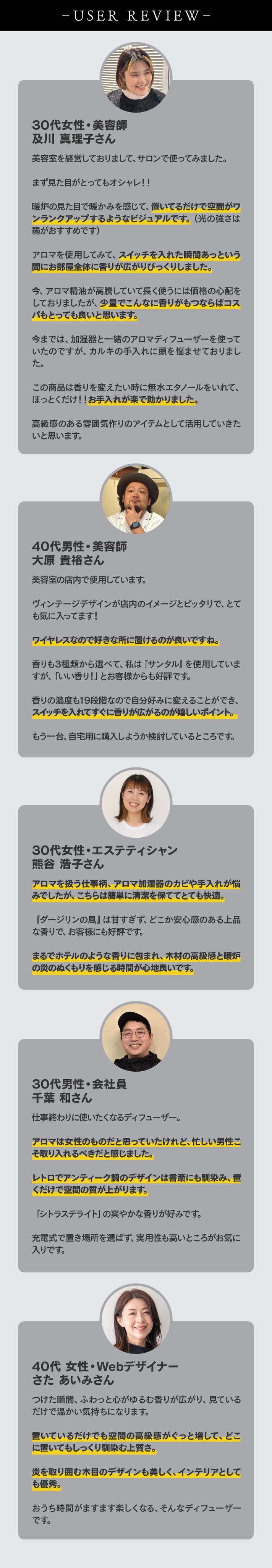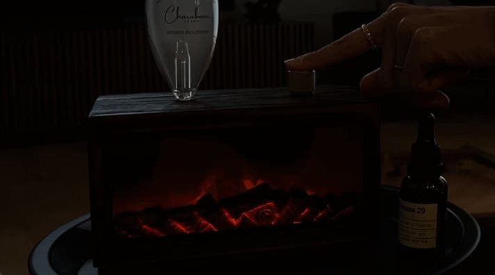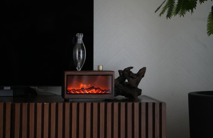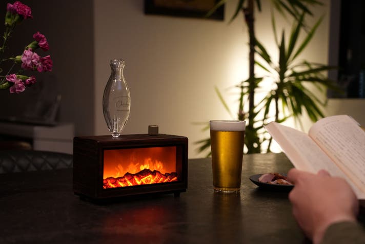 香りだけではなく、視覚でも癒し時間をお楽しみいただけるように、本体下部には暖炉風のデザインと炎の演出を設計。