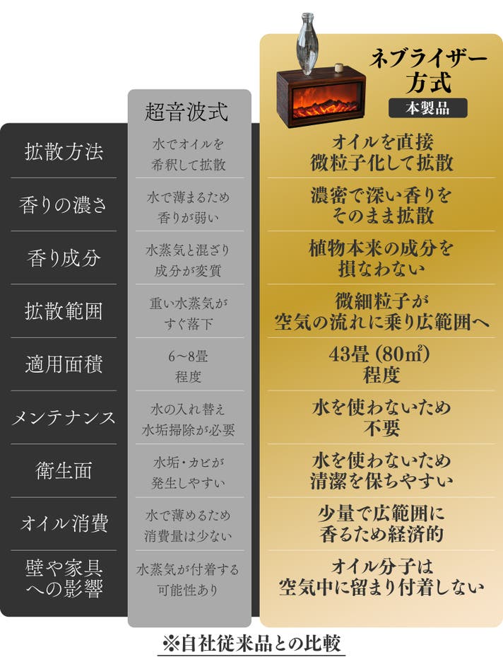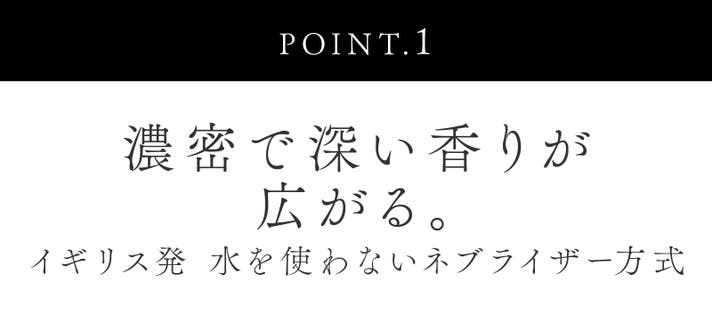 水を使わない特殊な仕組みなので、濃度の高い香りを瞬時に隅々まで拡散。