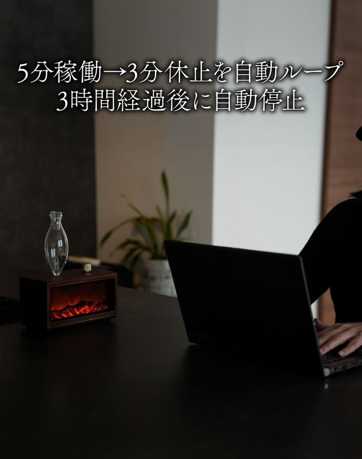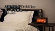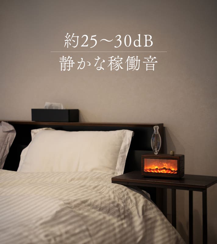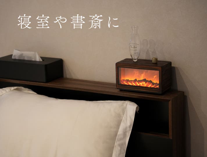 暖炉の炎を模したライト機能も完備しており、視覚からも安らぎをお届け。