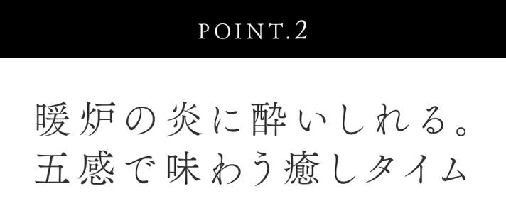 視覚でも堪能できる暖炉のゆらめきとの相乗効果で、極上のリラックスタイムを演出。