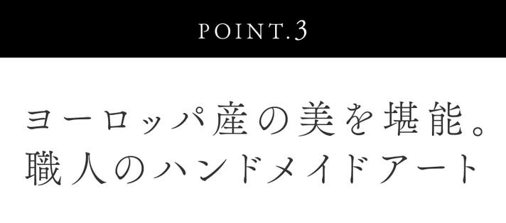 ヨーロッパ産の高級素材を使用した美観のハンドメイドアートで、あなただけの贅沢な空間をお楽しみいただけます。