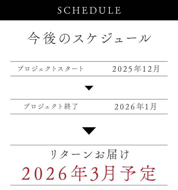このプロジェクトはAll in型です。目標金額の達成に関わらず、プロジェクト終了日の2026年01月30日までに支払いを完了した時点で購入が成立します。
