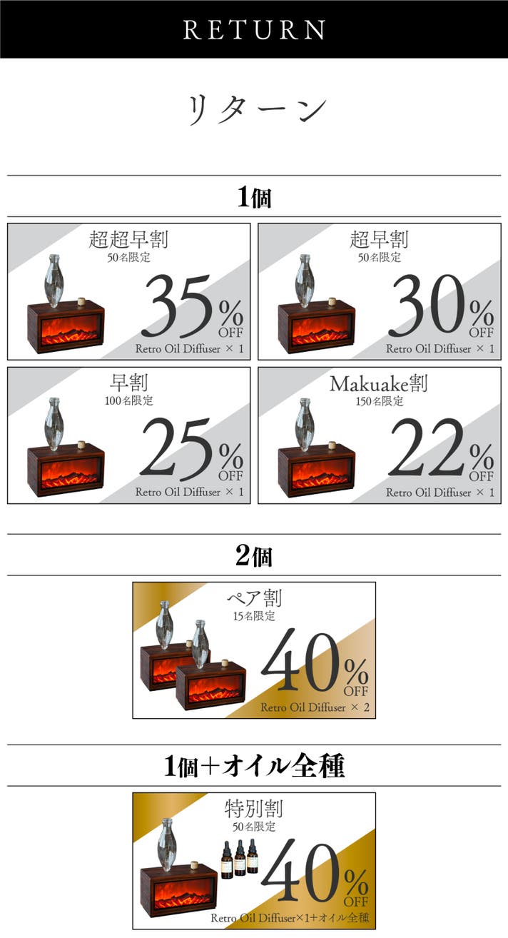 「Makuake(マクアケ)」は、実行者の想いを応援購入によって実現するアタラシイものやサービスのプラットフォームです。このページは、 プロダクトカテゴリの 「【深い香りと炎に酔いしれる】暖炉ライトが灯る。水不要の英国式アロマディフューザー」プロジェクト詳細ページです。