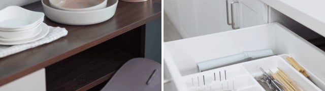 落ち着いたカラーで食べ物を引き立てます。