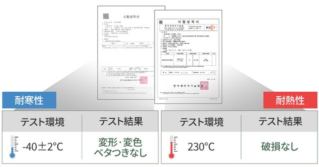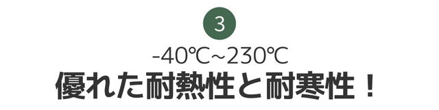 耐熱性と耐寒性テスト通過!-40℃~230℃の間接熱に耐える素材です!