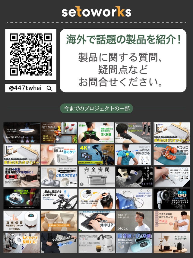 setoworksは日本の新しい製品を外国にいち早く紹介する事業を始め、海外の新しい商品や直接企画した多様なプロダクト製品を日本国内に紹介する事業を展開しています。