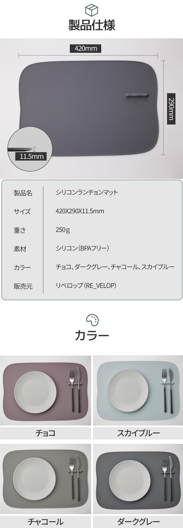 リベロプのシリコンランチョンマットはBPAフリーシリコンを使った製品で、半永久的に使えます。長くご愛用いただければ幸いです。