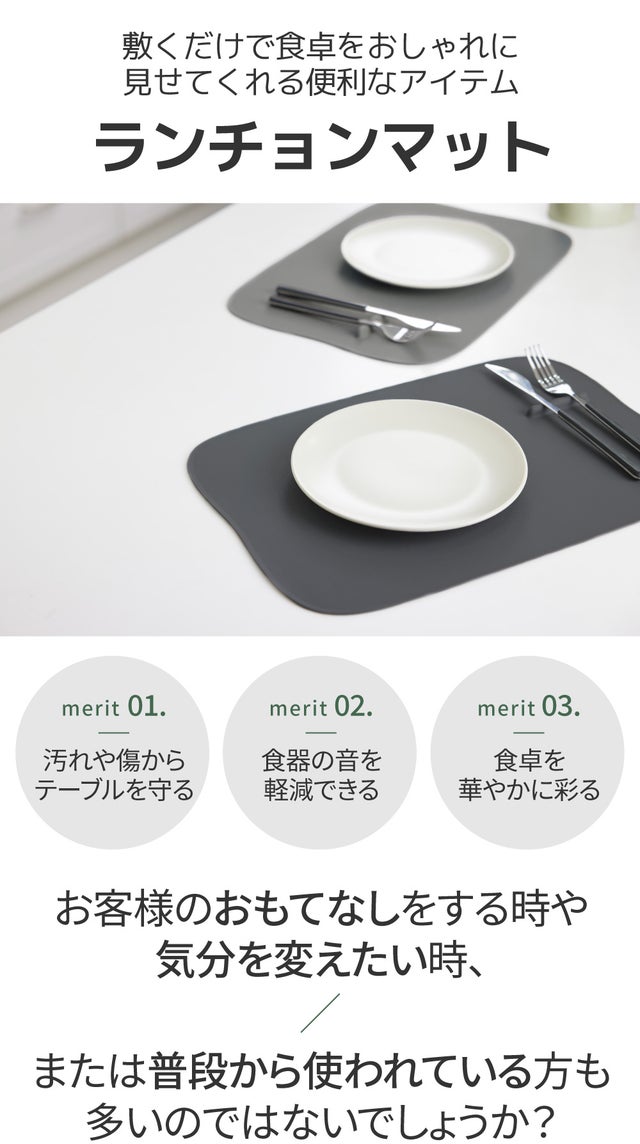 様々なシーンで手軽に使えるシンプルなランチョンマットをご紹介します。汚れや濡れに強く、とても使いやすい上にBPAフリーシリコンを使用して衛生的に使えます!ランチョンマットでテーブルをおしゃれに演出してください!