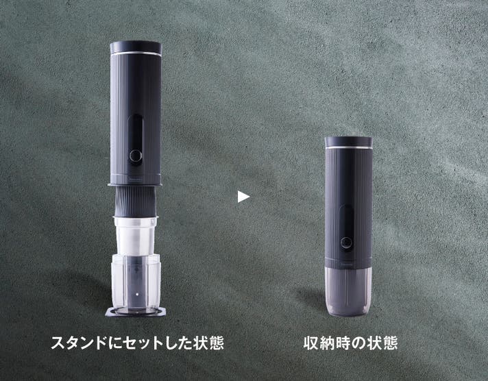 また、フル充電で最大約3杯分のコーヒーが、がコンセントなしで作れます。