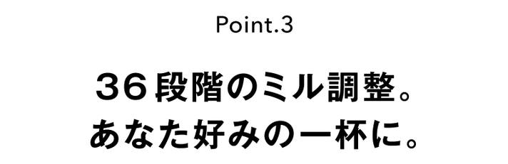 その日の気分や豆に合わせて味を追求できる、プロ仕様レベルの36段階で調整可能。メモリに合わせて回すだけで、あなたの求める理想の挽き目に仕上げます。