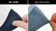 靴との摩擦によるズレを減らすため、今回のシリーズでは足の甲部分のゴムバンドを広く拡張した新しい編み方を採用しました。
