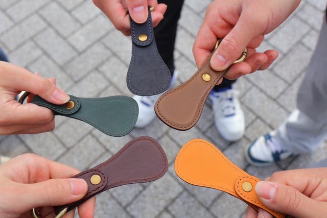靴べらとしても、革製のファッションアイテムとしても使用できるデザインに仕上がりました。カラーも豊富なので鞄に合わせてご使用ください!