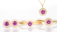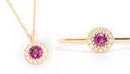 ジュエリー店舗でも見かけることがない、鮮やかな赤紫色を持つローズカラーのガーネットです。