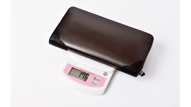◆二つのレザー素材を組み合わせているラウンドファスナー長財布ですが、「約176g」に抑える事が出来ました。