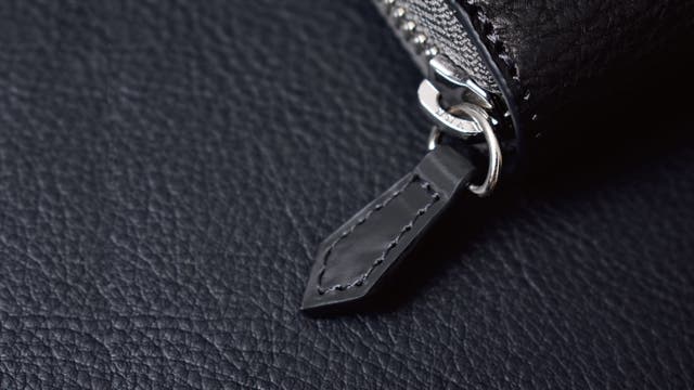 ◆ファスナーの引手にも本体と同じ同色のカウレザーを使用しています。