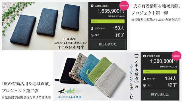 過去2回のプロジェクトに対して沢山の方々より応援購入頂きました。改めて御礼申し上げます。今回のプロジェクトは第二弾に引き続き気仙沼で捕獲されたサメ革を活用しています。今後も多くの方々に応援頂けるプロジェクトを行うよう努めて参ります。よろしくお願い致します。(スタッフ一同)
