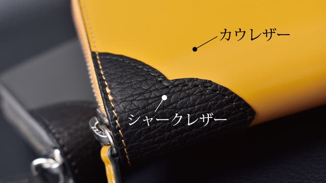 - 【カウレザー】と【シャークレザー】異素材コラボで仕立てたデザイン