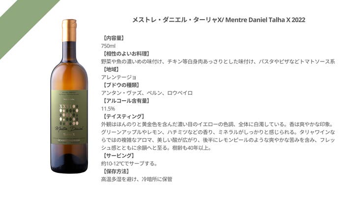メストレ・ダニエル・ターリャX 白/ Mestre Daniel Talha X 2022 750ml 1本