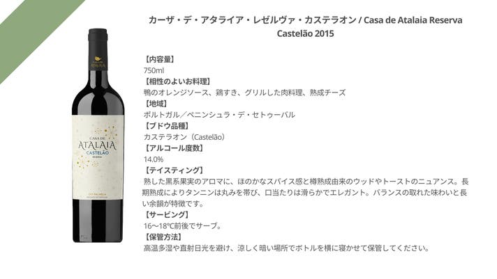 カザ・デ・アタライア・レゼルヴァ 2015 赤/ Casa de Atalaia Castelão Reserva 2015 750ml 1本