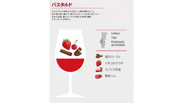 バスタルドは、その薄い皮質のため病気に非常に弱く、畑での特別な手入れが必要となり栽培に手間がかかりますが、繊細な皮質は柔らかなタンニンを生み出します。自然と軽やかなボディを持つワインとなり、優雅さと飲みやすさがあり、食材の自然の旨味を生かした料理にマッチします。クリアで繊細な魅力が際立ちます。
