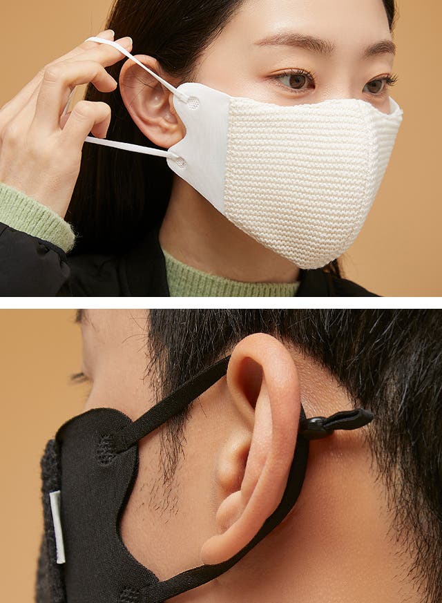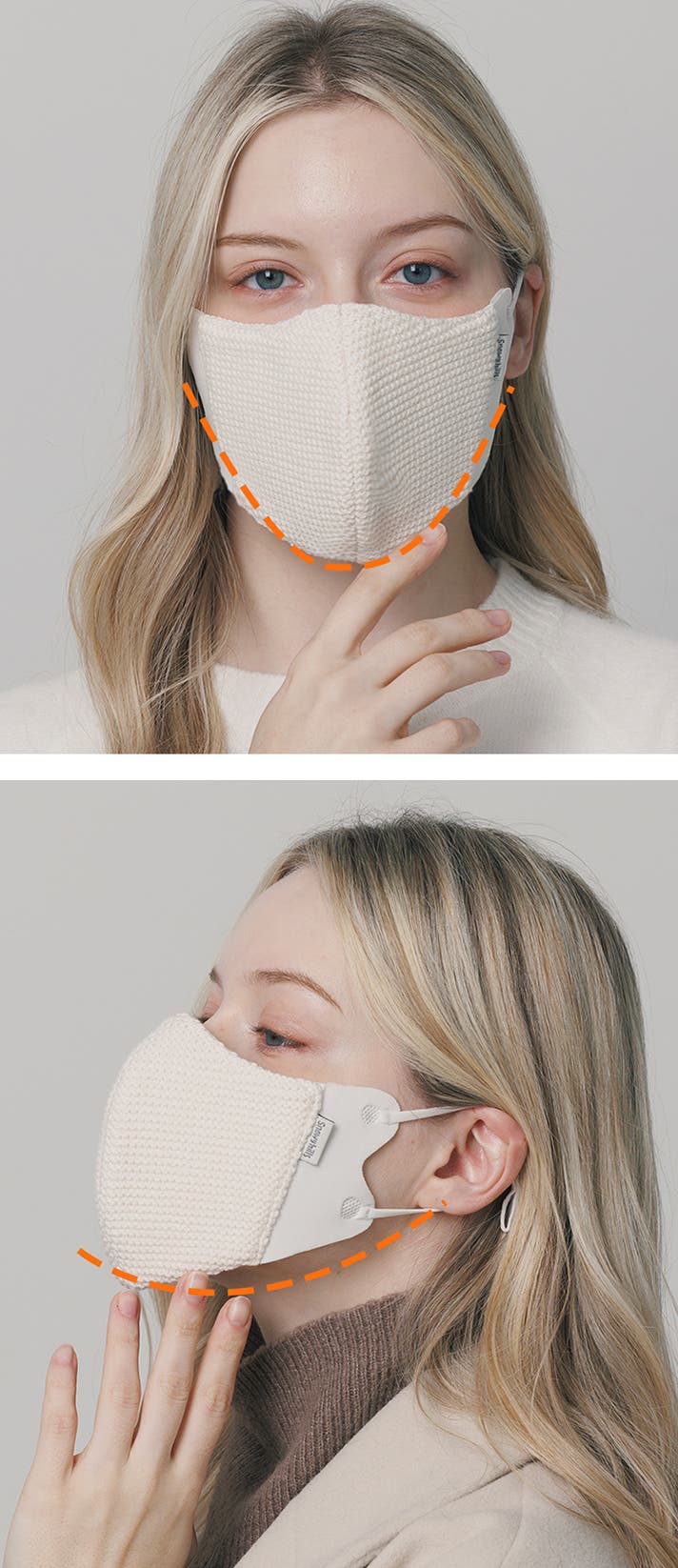ネオプレン生地は密着力がよく、どんな顔にも包み込む形にしてくれます。マスクをしても呼吸は不便が少なく、肌にやさしくなじみます。